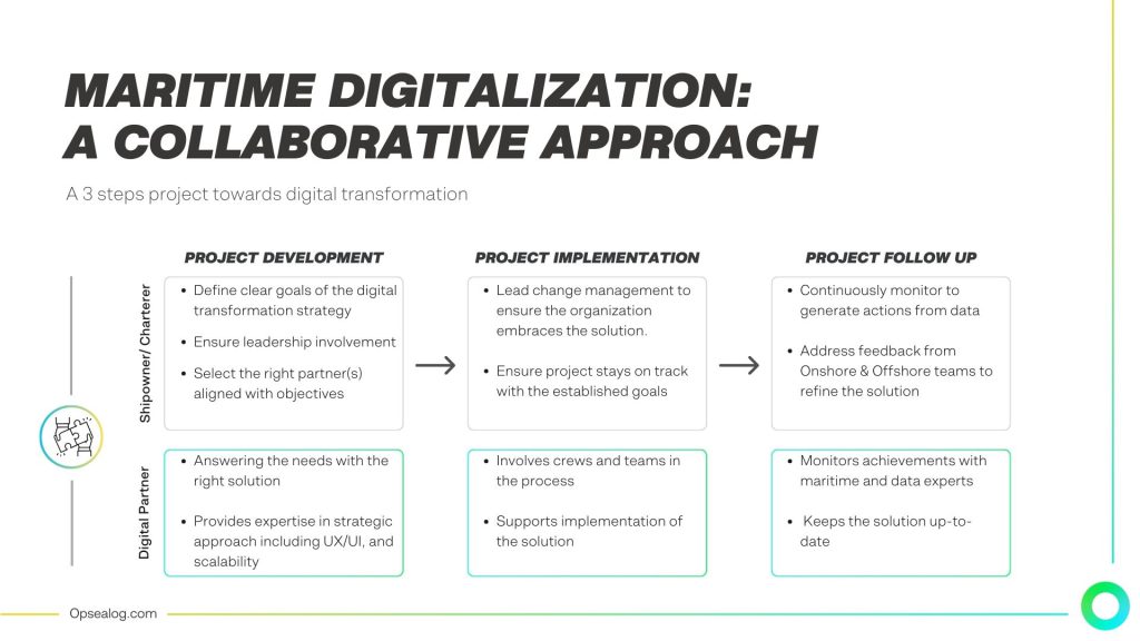 Once the direction is set, the focus shifts to execution. Crews and teams on board and onshore must be actively involved, ensuring the solution fits seamlessly into daily operations. Implementation support plays a vital role in overcoming resistance, solving technical hurdles, and embedding the new tools into workflows without disrupting operations.